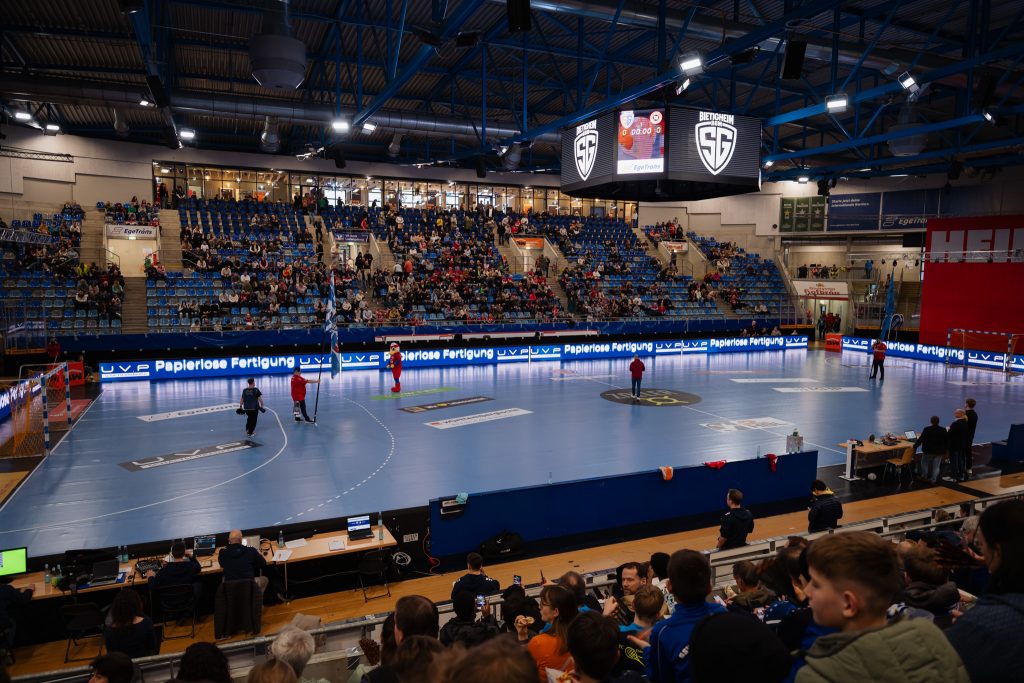 Nach dem offiziellen Teil machten sich die Sportlerinnen und Sportler gemeinsam auf den Weg nach Bietigheim, wo in der EgeTrans Arena das HandballspielSG BBM Bietigheim gegen TuS N-Lübbecke stattfand. Die Stimmung in der Arena war beeindruckend, und die Erdmannhäuser Fans unterstützten die SG BBM lautstark. Trotz der großartigen Atmosphäre musste sich die SG BBM an diesem Tag geschlagen geben – TuS N‑Lübbecke entschied die Partie für sich. Der Stimmung tat dies jedoch keinen Abbruch: Für alle Beteiligten war es ein gelungener Abschluss eines sportlichen und gemeinschaftlichen Tages. Wir bedanken uns bei der Gemeinde Erdmannhausen für diesen tollen Tag!
